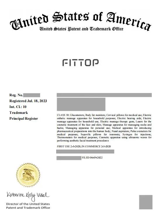 我司代理的深圳市**科技有限公司的“”商标(第3类和第10类)的美国商标注册申请,于2022年6月9日提交注册申请,并于2023年7月18日成功注册。