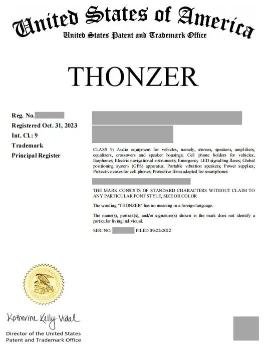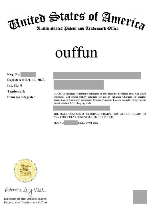 我司代理的深圳市**电子有限公司的“”商标的美国商标注册申请,于2022年09月22日提交注册申请,并于2023年10月31日成功注册。