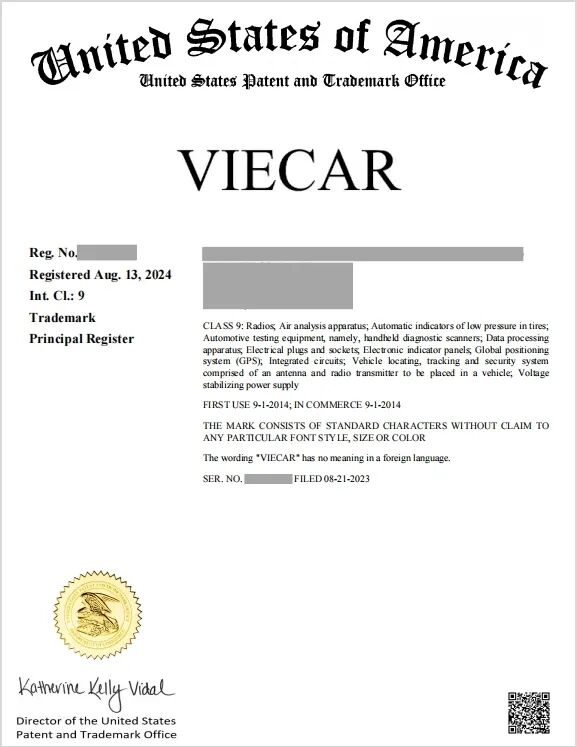 美国商标证书